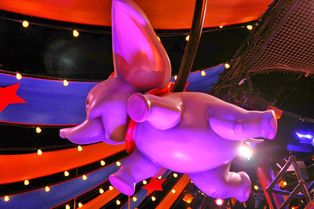 For today’s memory, we are continuing our second day in the parks on our trip in September of 2016. If you remember from Memory 255, we had gotten to enjoy a mildly thrilling ride on the Barnstormer, and as we exited we knew we had to hit Dumbo the Flying Elephant before leaving Storybook Circus. The wait time was pretty much nothing, and in fact, as we walk inside the tent, you’ll hear the attendant ask us if we want to play or just get in line. We’ll opt to bypass the play area, and without even stopping we manage to hop right onto an elephant for our turn to fly.