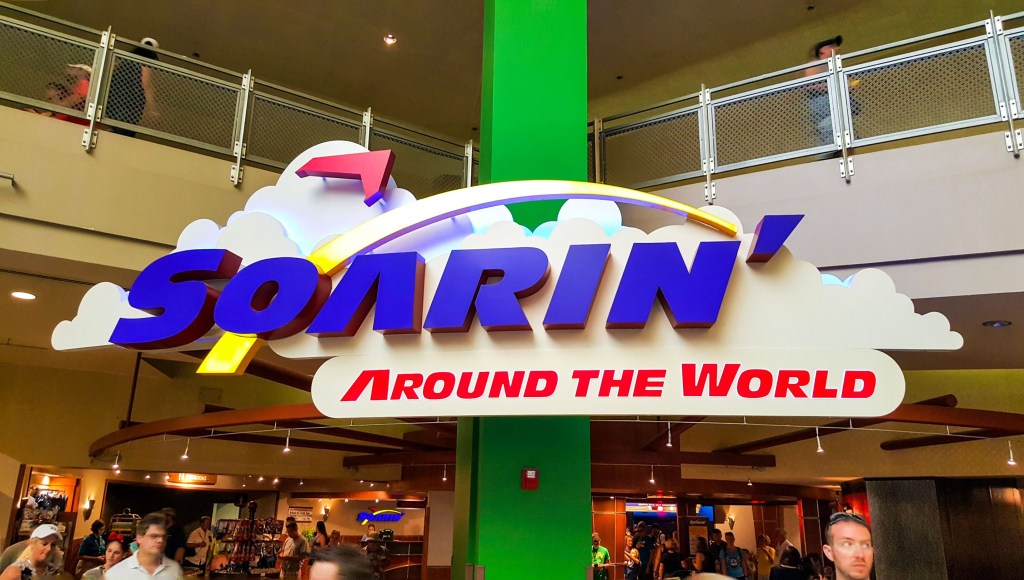 If you remember from Memory 278, we made it to the Land Pavilion, and as we were working our way down the outside rim, we passed the Awesome Planet movie which was about to begin. As we finish, we decided that this is a great time to eat, and Sunshine Seasons was going to be our place for dinner. We were able to find some great, and light fare that is beyond just Mac & Cheese or Chicken Fingers. The food was excellent and now that we’re fed, we have the energy to get in the posted 30 minute line for Soarin’. To our surprise, we didn’t even get stopped until we were just before the preshow. We’re let in on the left most queues as we’re near the back of the show, so unfortunately things are a bit warped from this side. We’ll laugh about it because we’ve seen the attraction many times before, so we’re ok. As we let out, not even 15 minutes after we got in line, it was a no brainer… let’s do it again. So we loop back around, get in the 30 minute posted wait, and walk all the way up to the pre-show. This time we’re stopped just short, so we’re in the first boarding group of the next show, which puts us, you guessed it, on the right most side. Again we laugh about the curved buildings, but just thuroughly enjoy the ride. As we return to earth, we are pretty sure where we’re going next.