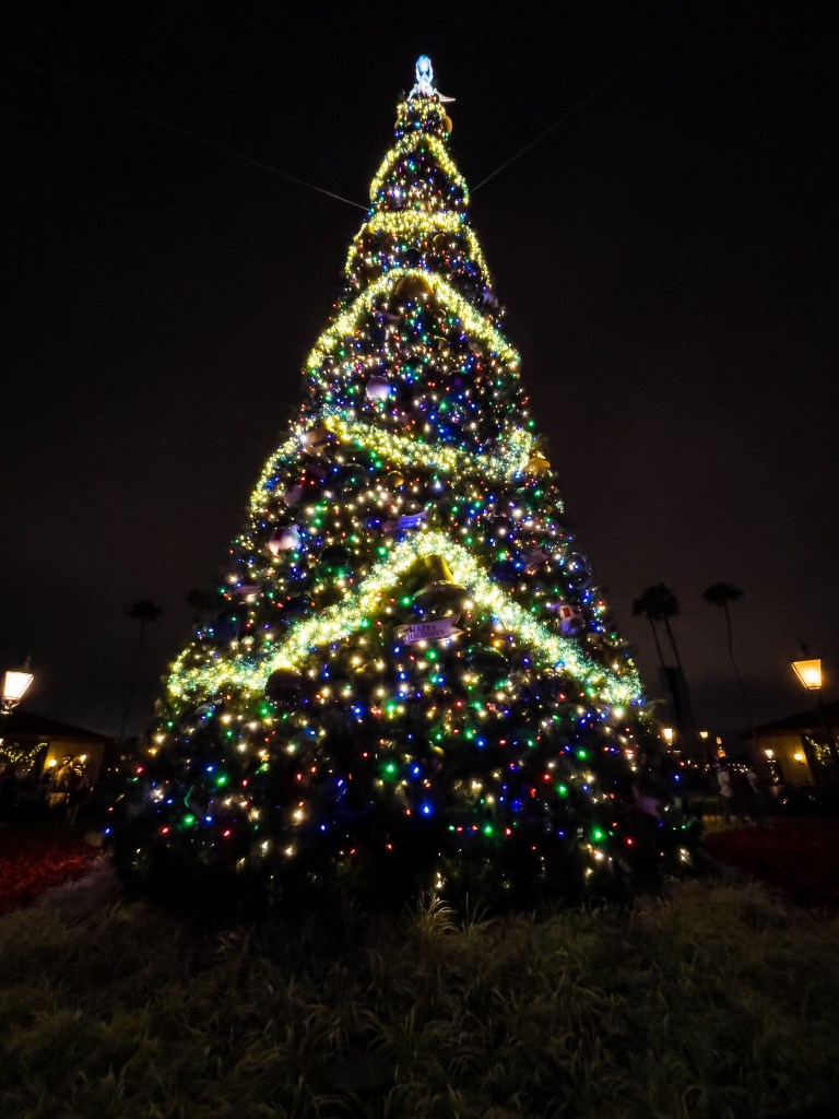 If you remember from Memory 283, we got to experience the celebration party that is the Harmonious Fireworks show. If you also remember, we had gotten some crepes but hadn’t had time to eat them yet. So we’ll find a bench behind us on the esplanade between the France and Morrocco pavilions and begin to dig in while we enjoy the post-fireworks-show music playing on a very nearby speaker. The crepes were ok, we’ve definitely had better, but I’ll be honest, they maybe were better when they were fresh, and not 20 minutes old. Once we finish, we don’t hop up quite yet, because the crowds are still heavy, and they are packed into the narrow walkways created through the construction going on around Spaceship Earth. After a bit, we’ll begin the trek around, past the France, UK, and Canada Pavilions, and stop by the Christmas Tree to look more closely at some of the ornaments. Susie had spotted one that looked like the old Illuminations globe, so I had to see that one. We’ll continue then, through the construction walls, under Spaceship Earth (again admiring the lights and updates), and finally out of the gates and into the parking lot. If you stick around to the very end, you might just hear what park will be up next for our family.