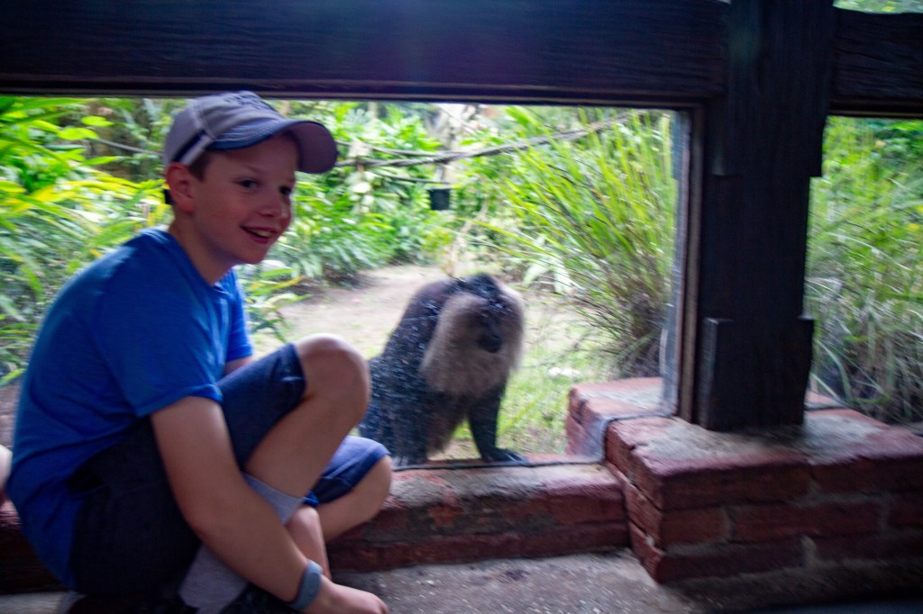 We’ll stop and see the Gibbons, Water Buffalo, Komodo Dragon, and Malayan Flying Fox, finishing with trying to spot the tiger in the grass. Some interesting things you’ll hear: