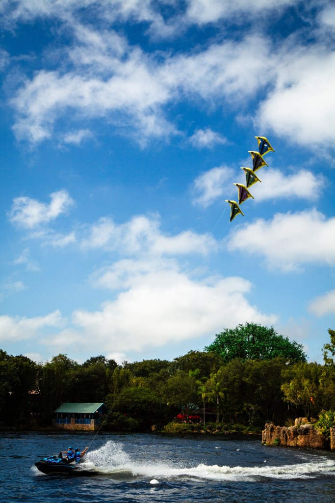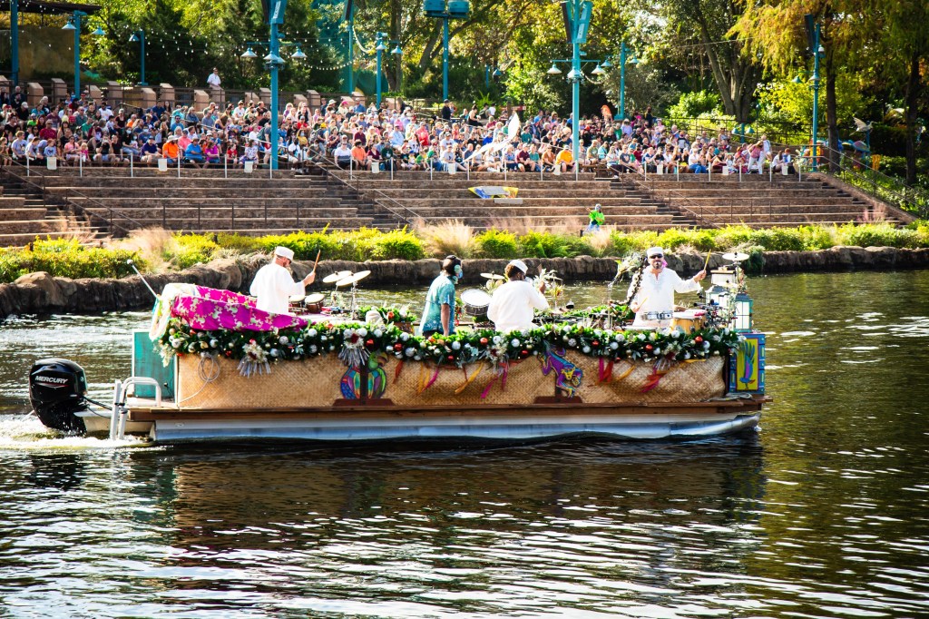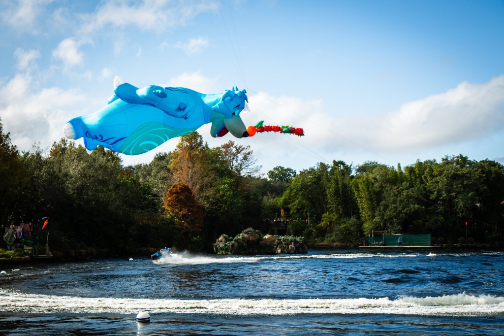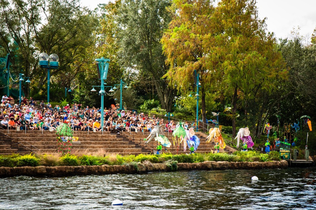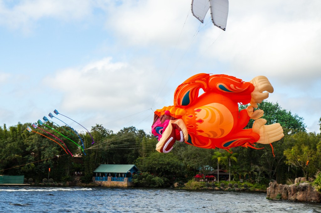 As we make our way through the land, we’ll join the memory, and soon be entering into the seating on the sunnier side closest to the entrance of Expedition Everest. The weather is warm, but we’ll enjoy the fun music while waiting for the show to begin. Around us, kids are being entertained with bubbles until the announcement signals the start of the show. The Discovery Island Drummers energize the crowd from a boat in front of us, and we’re excited to see the kites take to the sky. As each kite flies by, the crowd reacts with oohs and ahs. The few performers who put on this amazing show deserve recognition for their hard work.