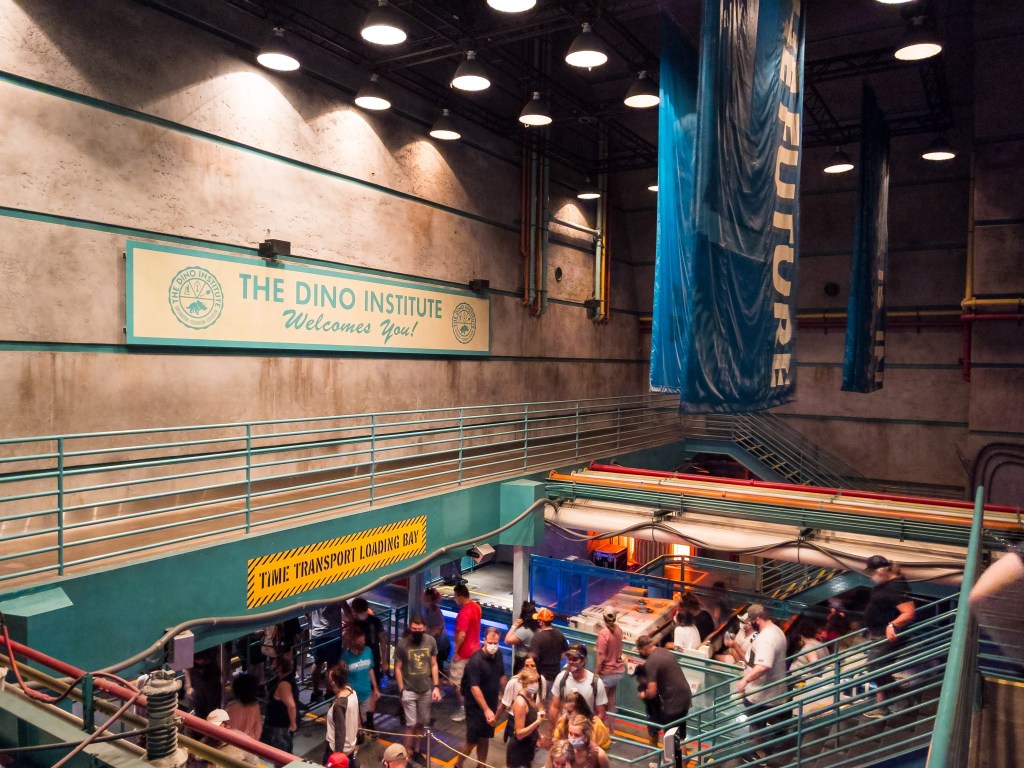 As we join the memory, we are leaving Asia and entering into Dinoland USA. The music will shift from peaceful instrumental sounds to a more modern holiday melody. We will fondly recall our past visits to this section of the park, which though distant, is full of cherished memories. Our route will take us past TriceratopSpin and onto the path leading to the Dino Institute. Here, we will be treated to the incredible musical score composed by James Newton Howard. Although the queue is lengthy and begins indoors, it will eventually lead outside before circling back in. I won’t subject you to the entire queue as I will trim this down quite a bit. Once inside, we will enjoy the “quaint exhibits” before we learn from Dr. Seeker and Dr. Marsh as they explain the purpose of the Time Rover and what our mission is.