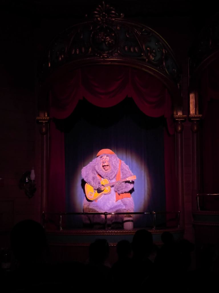 Today’s memory takes us back to a Wednesday afternoon in December 2021. In our previous memory, we just finished an awesome ride on Pirates of the Caribbean and headed back to the center of Adventureland. We checked out the Touring Plans Lines app to find our next adventure, and it suggested we check out the Country Bears. We’ll join the memory as we stroll through one of the breezeways and enter the waiting room for the next show, which starts in 4 minutes.