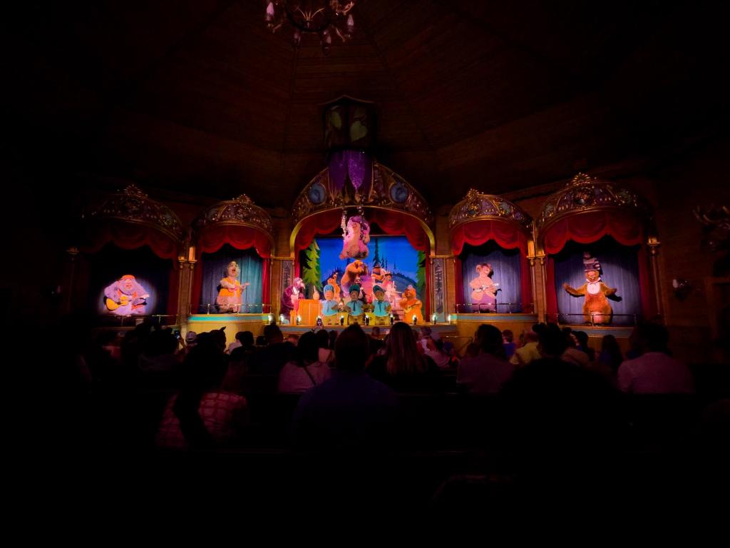 After the bears finish their performance, I’ll hang back and enjoy the music that plays while you leave. Then, I’ll catch up with my family who’s hanging out in the hallway outside. We’ll step back into the afternoon sunlight and check out the Lines app again to see where we should go next. It looks like we need to head to Fantasyland next.