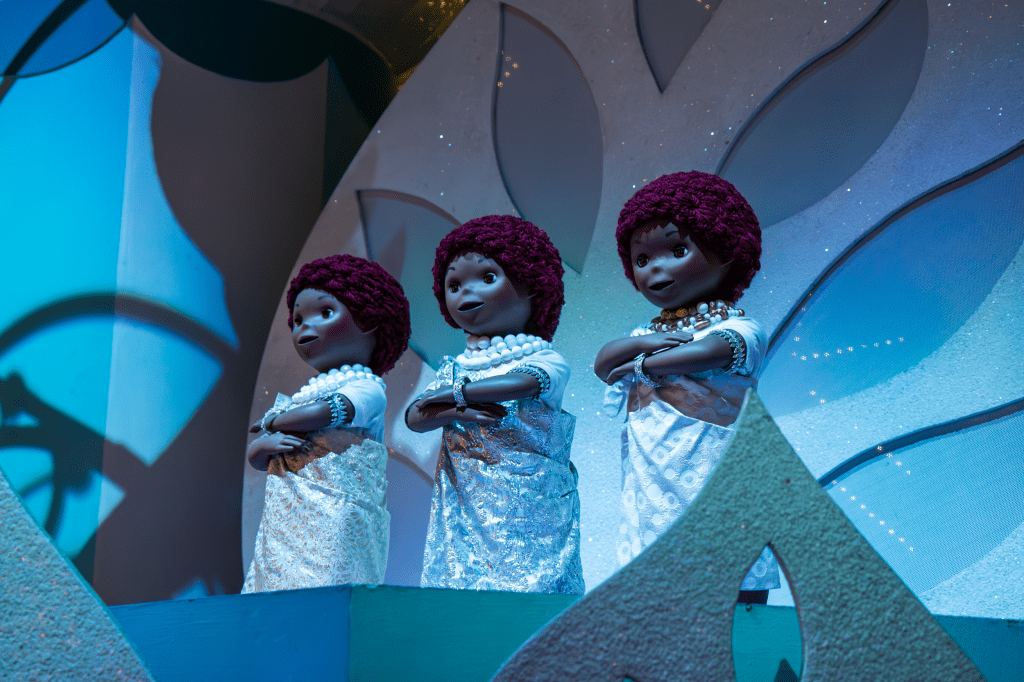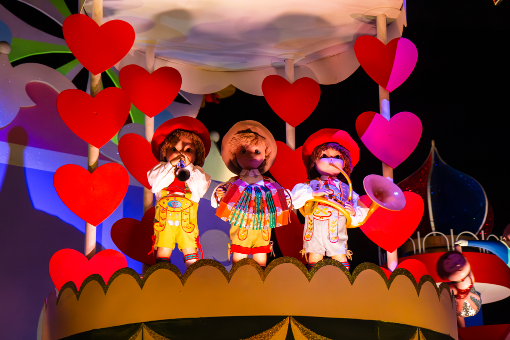 Today’s memory takes us back to a chilly Wednesday afternoon in December 2021. We just finished watching the classic Country Bear show, and we were on our way to Fantasyland for our next adventure. As we rounded the corner and crossed under the Columbia Harbour House, we caught our first glimpse of the Rapunzel Tower / Restrooms. Susie was a bit bummed because she’s a huge fan and wanted more there. But hey, we’ll keep climbing up the hill and approach the big crowd waiting for ‘it’s a small world’. We’ll slide into the queue and enjoy the music as it mixes into the background. As we get closer to the end of the ramp, the quarter hour hits, and the clock doors open on the Small World clock. Soon after, we’ll climb into our boat and set off on our musical adventure.