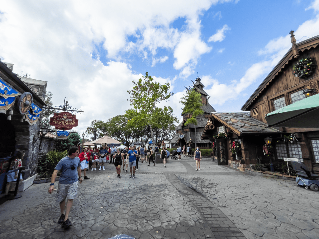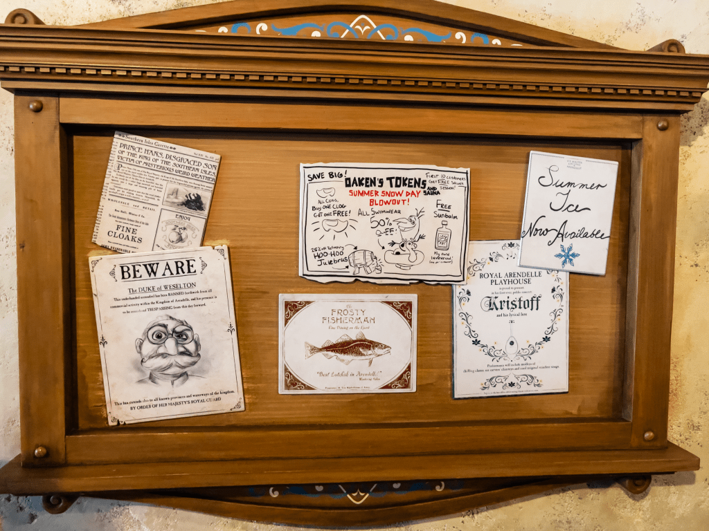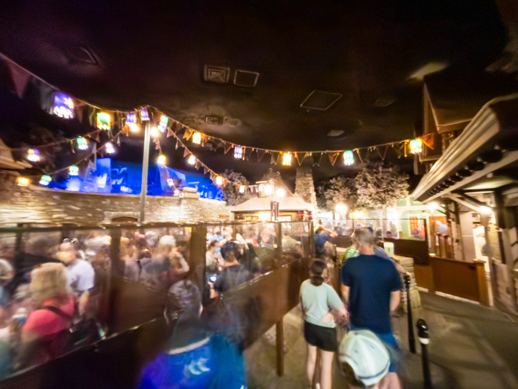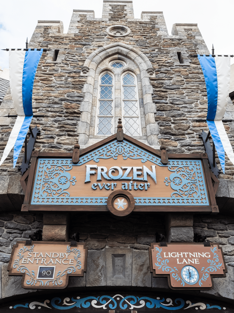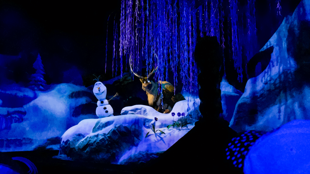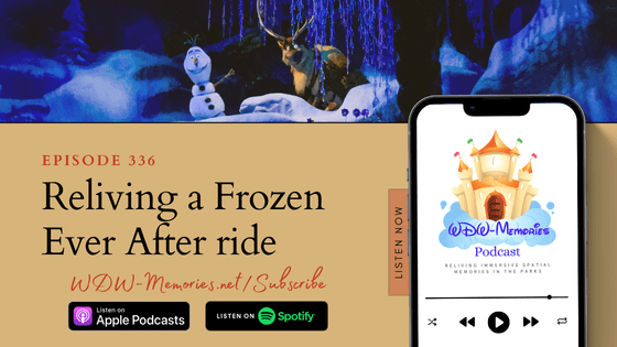 We’re joining today’s memory as we have made our way to the back of the park, ahead of most of the crowds, and joined the line for Frozen, which is already over an hour. The queue is out the building, back and forth in front of Akershus, and wrapping around almost into China. But, they tell us this wait is still shorter than it will be the rest of the day, so we go ahead and get in line. We won’t listen to all 60 minutes of the queue, but we’ll catch a few different interesting moments with cast members, or background music, or Oaken as we make our way to the loading area.